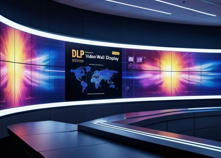 A DLP (Digital Light Processing) wall display is a high-resolution, large-scale video display solution used for presenting content across multiple screens