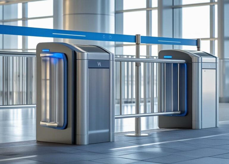 A flap barrier is a type of access control gate commonly used in high-security areas such as metro stations, office buildings, and airports.